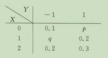 【题目解析】:本题主要考查的知识点是联合分布律的性质,由联合分布律的性质可知0.1+p+q+0.2+0.2+0.3=1,即p+q=0.2,将各个选项代入可知C选项错误。P85