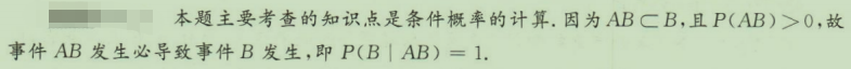 设A,B为两个随机事件,且P(A)>0,P(AB)>0,则P(B|AB)=