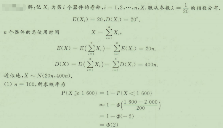 设某种器件使用寿命(单位:小时)服从指数分布,平均使用寿命为20小时,具体使用时,当一个器件损坏后立即更换一个新器件,如此继续,假定一年内需用1600个工作小时。