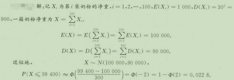 袋装奶粉规定每袋净重1000克,标准差为30克,每箱装100袋,求一箱奶粉净重不足99.4千克的概率。