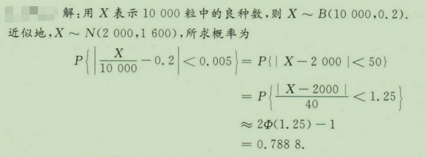 从良种率为20%的一大批种子中任选10000粒,求在这10000粒种子中良种所占的比例与良种率之差的绝对值小于0.5%的概率。