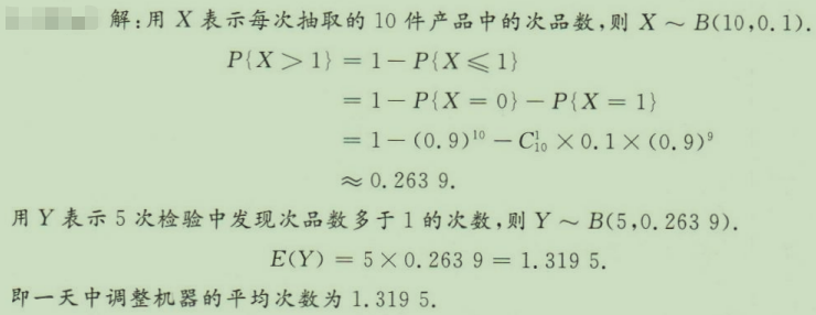 某产品的次品率为0.1,检验员每天检验5次,每次随机地抽取10件产品,如果发现其中的次品数多于1,就通知值班工人调整机器,求一天中调整机器的平均次数。