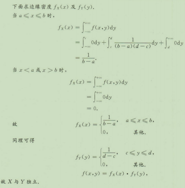 (X,Y)服从矩形区域D={(x,y)|a≤x≤b,c≤y≤d}上的均匀分布,证明:X与Y独立。