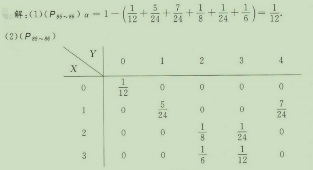 如果(X,Y)的所有可能取值为(0,0),(1,1),(1,4).(2,2),(2,3),(3,2).(3,3),而且取这些值的相应概率为1/12,5/24,7/24,1/8,1/24,1/6,α。