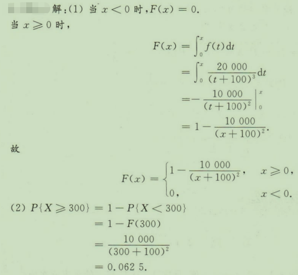 设某种药品的有效期为X天,其概率密度为求:(1)X的分布函数;(2)有效期至少为300天的概率。