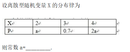 随机变量X的分布函数为F(x),已知F(2)=0.5,F(-3)=0.1,则P{-3< X≤ 2}=().
