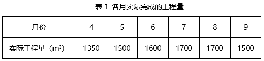 (5)各月计划工程量与实际工程量如表1所示,承包商每月实际完成工程已经工程师签证确认。