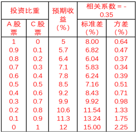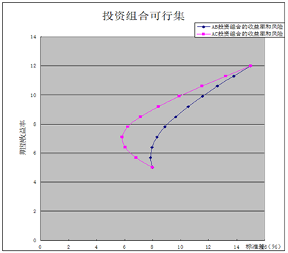 (1)AC组合能够获得更多的多样化好处,因为相关程度越低,投资组合分散风险程度越大。