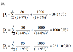 到期收益率为7%时,上升1%所引起的债券价格变化率为: 1000÷1041-1= -3.94%;到期收益率为8%时,上升1%所引起的债券价格变化率为: 961.10/1000-1= -3.89%。当收益率为7%时,到期收益率上升1个百分点所引起的债券价格变化率大。