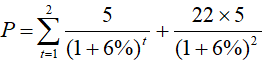 设某张可转换债券的面值为100元,票面利率为5%,期限5年,转换比例为5。预计2年后的标的股票价格为22元/股,折现率为6%,则该投资者认为该可转换债券的合理价格为多少元?