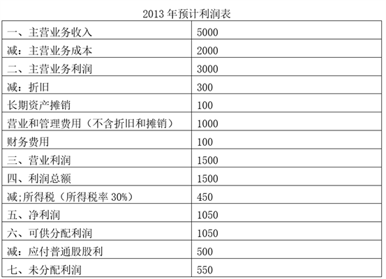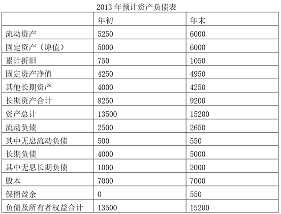 1. ABC公司2013年预计的损益及资产负债表如下表(单位:万元):
