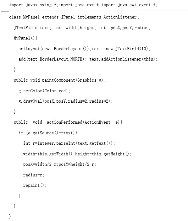 阅读以下程序,请回答下列问题:(1)程序运行时,在文本域中输入30并回车,程序输出什么样的图形?该图形是什么颜色的?(2)包围该