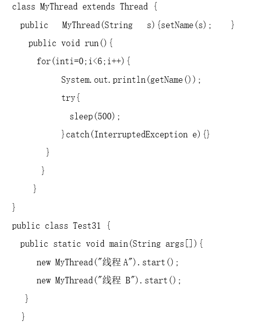 【正确答案】:该程序随机输出“线程A”“线程B”,分别是6次。
