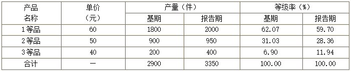 根据某企业的下列资料计算:报告期的产品等级率,平均等级并判断产品质量的升降,由于等级变化造成的损益。