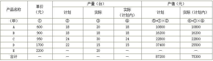 某机械厂某月产量资料如下:试计算:(1)计划品种完成率;(2)品种计划完成情况指标。