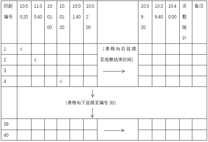 七、观察时间:(一)观察时距:20秒(观察15秒,记录5秒)。