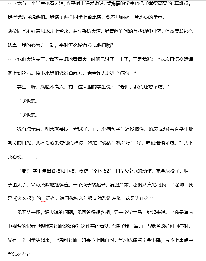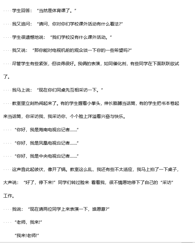 【正确答案】:(1)转折点是教师设计了一个让学生模拟记者采访的情境。