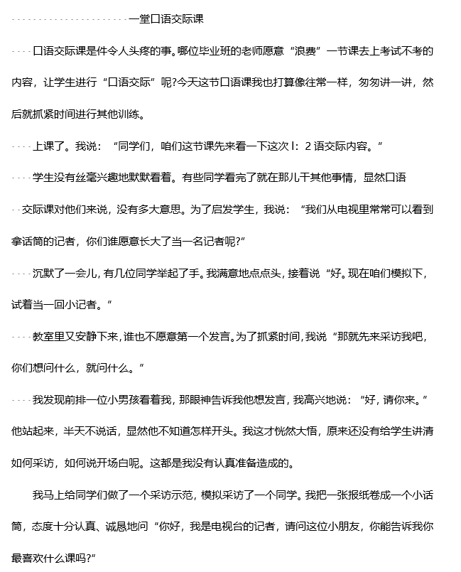 (2)教师以一名与学生平等融治的交流者身份参与口语交际,与学生进行心灵的交往,促成了师生之间良好的互动效应,实现了师生之间关系的升华。(注:答出大致要点即可,不必要求表述完全一致。)