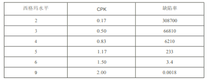 由上表可知,4σ质量水平表示质量特性的缺陷率为6210PPM。