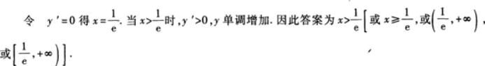 【题目解析】:首先,我们来分析题目。 这道题主要考察了函数的单调性以及求导的知识点。 接下来我们详细分析其推理过程: 根据题目所给,需要求出函数$Y=x\ln x$的单调增加区间。 因为函数的单调性可以通过其导数的正负情况来判断,所以我们先对函数$Y=x\ln x$进行求导: 根据求导公式:若$f(X)=X^n$,则$f^\prime(X)=nX^{n-1}$,以及$\ln^\prime x=\frac{1}{x}$。 所以对$Y=x\ln x$求导得:$Y^\prime=\ln x+1$ 然后,我们需要找到$Y^\prime$大于0 的区间,因为$Y^\prime$大于0 时函数单调递增。 即:$\ln x+1\gt0$ 移项得:$\ln x\gt-1$ 因为对数函数$ln x$是单调递增的,所以当$ln x\gt-1$时,$x\gt e^{-1}$。 又因为函数$Y=x\ln x$的定义域为$x\gt0$。 综上可得,函数$Y=x\ln x$的单调增加区间是$(e^{-1},+\infty)$。