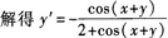 【题目解析】:根据隐函数求导法则,设函数$F(x,y)$在点$(x_0,y_0)$的某邻域内具有连续偏导数,且$F(x_0,y_0)=0$,$F_y(x_0,y_0)\neq0$,则方程$F(x,y)=0$在点$(x_0,y_0)$的某邻域内可唯一确定一个函数$y=f(x)$,满足$y_0=f(x_0)$,并有: $\frac{dy}{dx}=-\frac{F_x(x,y)}{F_y(x,y)}$ 对于本题,设$F(x,y)=2y+sin(x+y)$,则: $F_x(x,y)=cos(x+y)$ $F_y(x,y)=2+cos(x+y)$ 将$F_x(x,y)$和$F_y(x,y)$代入隐函数求导法则中,得到: $\frac{dy}{dx}=-\frac{F_x(x,y)}{F_y(x,y)}=-\frac{cos(x+y)}{2+cos(x+y)}$ 因此,$y^\prime=-\frac{cos(x+y)}{2+cos(x+y)}$。
