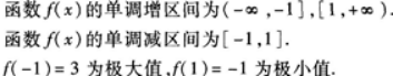 【题目解析】:对函数$f(x)=x^3-3x+1$求导可得$f^\prime(x)=3x^2-3$,令$f^\prime(x)=0$,即$3x^2-3=0$,$3(x^2-1)=0$,$3(x+1)(x-1)=0$,解得$x=-1$或$x=1$。 当$x<-1$或$x>1$时,$f^\prime(x)>0$,函数单调递增;当$-1