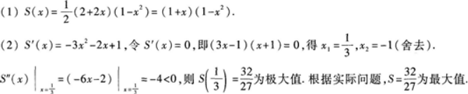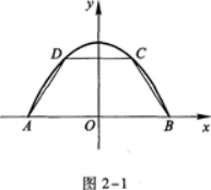 设抛物线Y=1-x2与x轴的交点为A、B,在抛物线与x轴所围成的平面区域内,以线段AB为下底作内接等腰梯形ABCD(如图2—1所示).设梯形上底CD长为2x,面积为