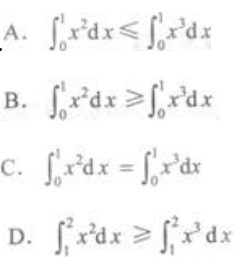 【题目解析】:在[0,1]上,x2≥x3,由定积分的性质可知选B.同样在[1,2]上,x2≤x3,可知D不正确.
