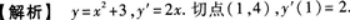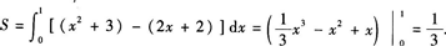 【题目解析】:首先对曲线\(y=x^2+3\)求导,可得\(y^\prime=2x\)。 将\(x=1\)代入导数中,可得切线的斜率为:\(2\times1=2\)。 已知切线过点\((1,4)\),根据点斜式方程可得切线方程为:\(y-4=2(x-1)\),整理得:\(y=2x+2\)。 接下来计算平面图形的面积。 曲线与\(y\)轴的交点为\((0,3)\),切线与\(y\)轴的交点为\((0,2)\)。 则所求平面图形的面积为: \[ \begin{align*} S&=\int_0^1(x^2+3-2x-2)dx\\ &=\int_0^1(x^2-2x+1)dx\\ &=\frac{1}{3}x^3-x^2+x\Big|_0^1\\ &=\frac{1}{3}-1+1-\left(0-0+0\right)\\ &=\frac{1}{3} \end{align*} \] 综上所述,平面图形的面积\(S=\frac{1}{3}\)。