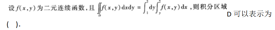 如果换为先对y积分后对x积分的积分次序,则区域D可以表示为