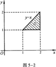 先依所给积分次序的积分限写出区域D的不等式表达式画出积分区域D的图形如图5-2所示.