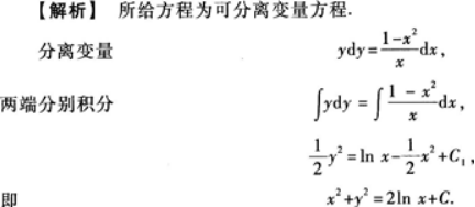 微分方程xyy′=1-x2的通解是_____.