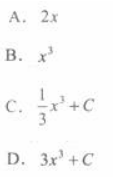 【题目解析】:由于x2为f(x)的一个原函数,由原函数的定义可知f(x)=(x2)'=2x,故选A.