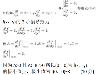 设函数f(x,y)=X2+Y2+xy+3,求f(x,y)的极值点与极值.