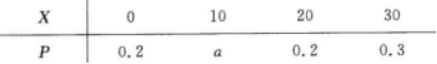 【正确答案】:(1)因为0.2+a+0.2+0.3=1,所以a=0.3.(4分)(2)E=0×0.2+10×0.3+20×0.2+30×0.3=16,(7分) DX=(0-16)2×0.2+(10-16)2×0.3+(20-16)2×0.2+(30-16)2×0.3=124.(10分)