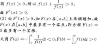 (1)F’(x)>0; (2)F’(x)=0在[a,b]内有唯一实根.