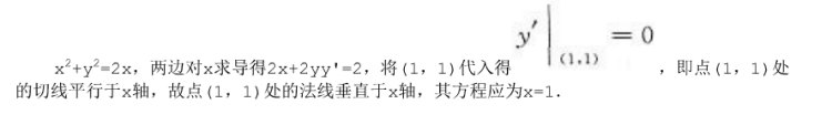 曲线x2+y2=2x在点(1,1)处的法线方程为()