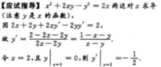 【考情点拨】本题考查了隐函数在一点处的一阶导数的知识点.