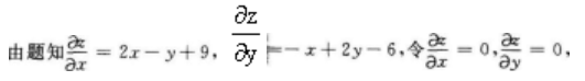求函数z=x2-xy+y2+9x一6y+20的极值.