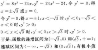 确定函数y=2x4-12x2的单调区间、极值及函数曲线的凸凹性区间和拐点.