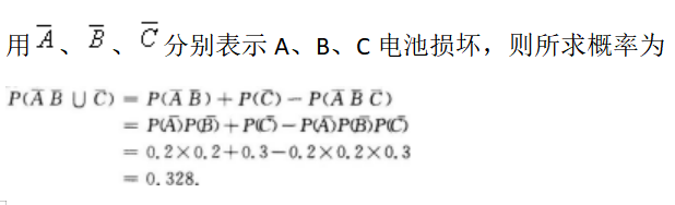 电路由两个并联电池A与B,再与电池C串联而成,设电池A、B、C损坏的概率分别是0.2,0.2,0.3,求电路发生间断的概率.