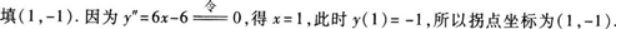 【题目解析】:对\(y=x^3-3x^2+5x-4\)求导得\(y^\prime=3x^2-6x+5\)。 再对\(y^\prime=3x^2-6x+5\)求导得\(y^{\prime\prime}=6x-6\)。 令\(y^{\prime\prime}=0\),则有: \(6x-6=0\) ```compute Solve[6*x-6 == 0, x, Reals] 我们有方程 6*x-6 = 0 将方程两边同时加 6 6*x-6+6 = 0+6 6*x = 6 将方程两边同时除以 6 6*x/6 = 6/6 $ x = 1$ 最终答案:{{x -> 1}} ``` \(x=1\) 当\(x\lt1\)时,\(y^{\prime\prime}\lt0\);当\(x\gt1\)时,\(y^{\prime\prime}\gt0\)。 所以\(x=1\)是函数的拐点。 将\(x=1\)代入\(y=x^3-3x^2+5x-4\)得: \(y=1^3-3\times1^2+5\times1-4\) ```compute N[1^3-3*1^2+5*1-4] 我们有算式 1^3-3*1^2+5*1-4 = 1-3+5-4 = -1 最终答案:-1. ``` \(=-1\) 因此,曲线\(y=x^3-3x^2+5x-4\)的拐点坐标为\((1,-1)\)。