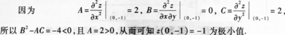 【题目解析】:核心考点是函数极值的求解。求偏导数判断极值,第一个答案是计算过程,第二个是结果。填空处旨在考查对求极值方法的掌握和运用,以及对函数性质的理解。