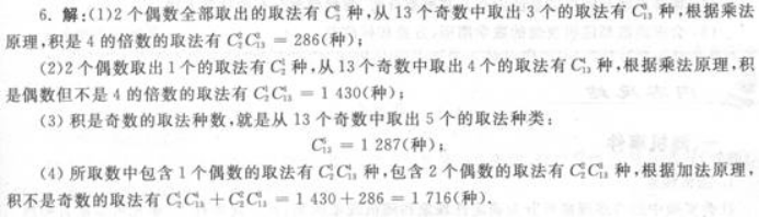 有13个不同的奇数,2个不同的偶数(但不是4的倍数),从中任取5个相乘: (1)如果积是4的倍数,有多少种取法 (2)如果积是偶数但不是4的倍数,有多少种取法 (3)如果积是奇数,有多少种取法 (4)如果积不是奇数,有多少种取法