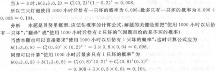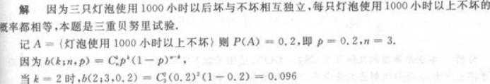电灯泡耐用时间在1000小时以上的概率为0.2,求三只灯泡使用l000小时以后恰有一只坏与最多只有一只坏的概率.