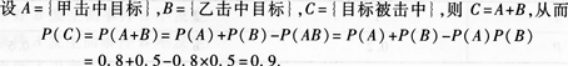 甲、乙两人独立地向同一目标射击,甲、乙两人击中目标的概率分别为0.8, 0.5,两人各射击1次,求至少有1人击中目标的概率.
