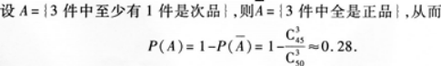 设50件产品中,45件是正品,5件是次品,从中任取3件,求其中至少有l件 是次品的概率(精确到0.01).