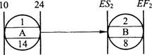 已知单代号网络计划中,工作A最早开始时间(ES)和最早完成时间(EF)分别为10天和24天,则其紧后工作B的最早开始时间(ES2)和最早完成时间(EF2)分别为( )。