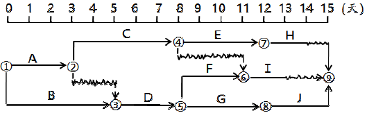 某工程双代号时标网络计划如下图,工作C的最早开始时间和总时差分别是( )天。