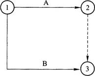 建设工程常用网络计划中,双代号网络图中虚箭线表示( )。